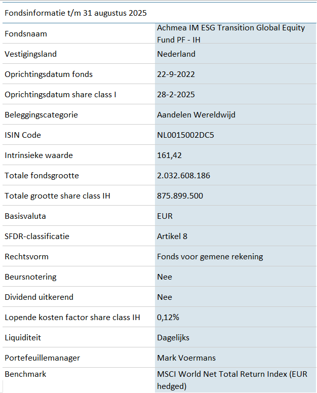 De doelstelling van het Fonds is om de benchmark, met inachtneming van de aanpassing van het beleggingsuniversum dat ontstaat door toepassing van het MVB-beleid van de Beheerder zo goed mogelijk te volgen. Er is geen sprake van volledige replicatie (nabootsing) van de benchmark. Hierdoor zijn beperkte rendementsverschillen, afgezien van kosten zoals vermeld in het prospectus, ten opzichte van de benchmark mogelijk. Het vermogensbeheer van het Fonds is ingericht op basis van enhanced indexing uit oogpunt van optimalisering van het rendement-risicoprofiel.